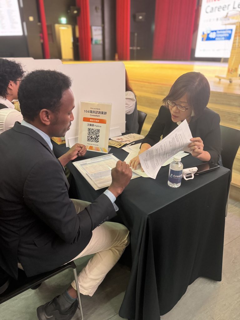 (圖說:104人力銀行響應教育部4/9「國際學生就業博覽會」,外籍人才踴躍參與 104 履歷健診,展現積極留台就業意願。)