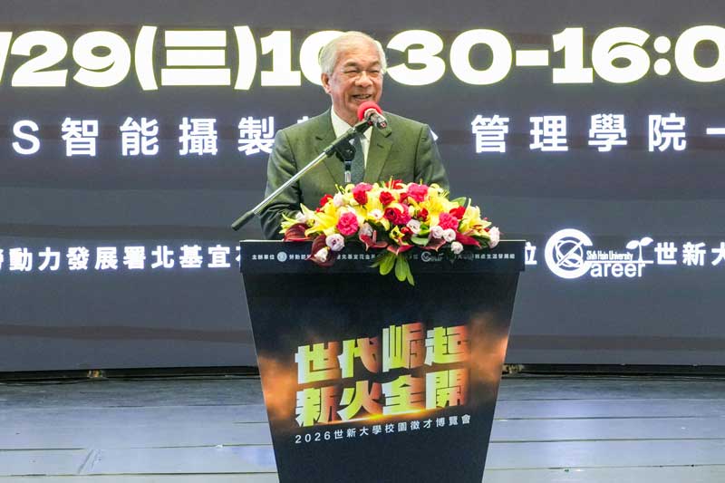 世新大學校長陳清河出席開幕時表示,校園徵才博覽會已舉辦超過10年,核心是為學生找到職涯方向,也為企業媒合人才。面對業界持續反映人才難尋,關鍵不在有沒有人,而在是否真正契合。世新長期強調學用合一,透過專業實習、策略聯盟與海內外業界同步設備,讓學生在校期間就累積即戰力。