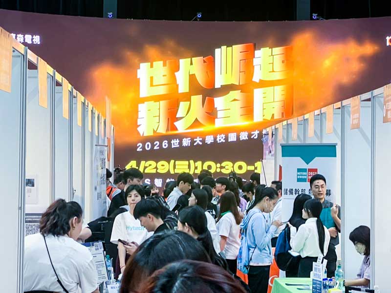 找工作這件事,進到棚內後,節奏也跟著快了起來。世新大學「校園徵才博覽會:世代崛起,新火全開」29日登場,首度移師室內,在「LVS智能攝製基地」及管理學院大廳同步舉行,集結75家指標企業、橫跨17種產業類別,釋出超過3,000個職缺,讓校園徵才現場多了科技感,也更貼近產業實況。