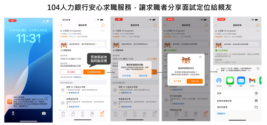 延伸閱讀:104「抵達面試地點、取消面試」怎麼回報?安心面試流程與分享功能盤點