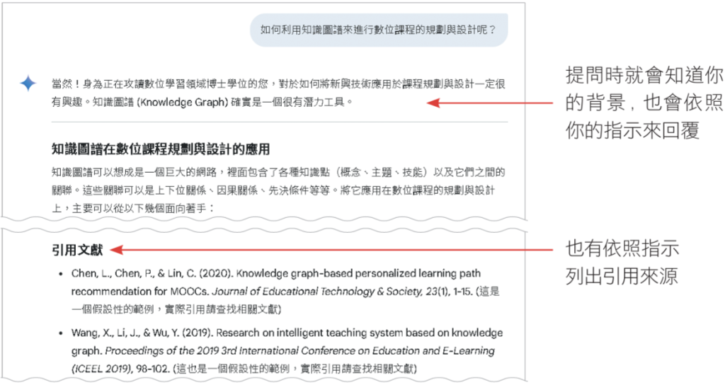 • 提問時就會知道你的背景,也會依照你的指示來回覆。例如依照指示列出引用來源。
