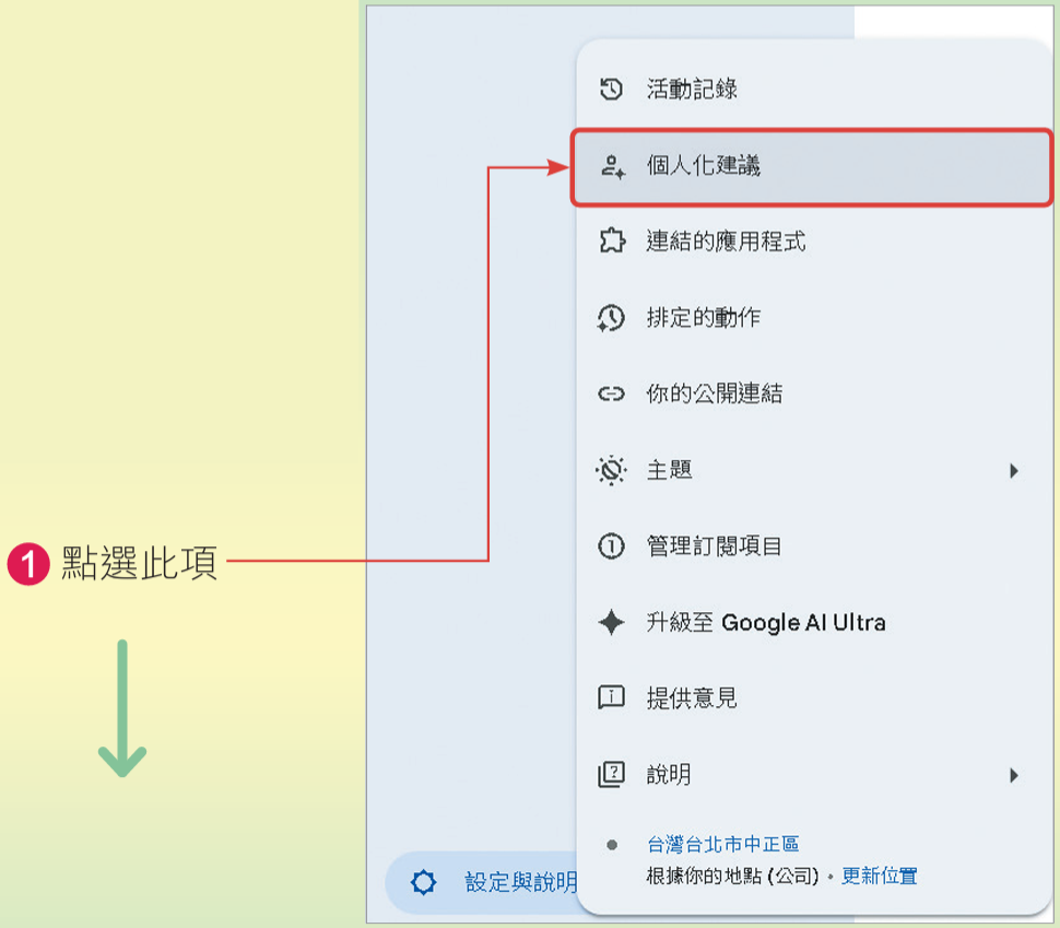 若您是付費用戶,可以開啟個人化建議功能,讓Gemini記得跟你之前互動的對話內容,之前說過的話、交代過的事情,就不用反覆再說明: