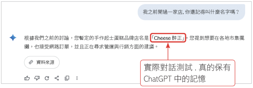 • 實際對話測試,真的保有ChatGPT中的記憶。