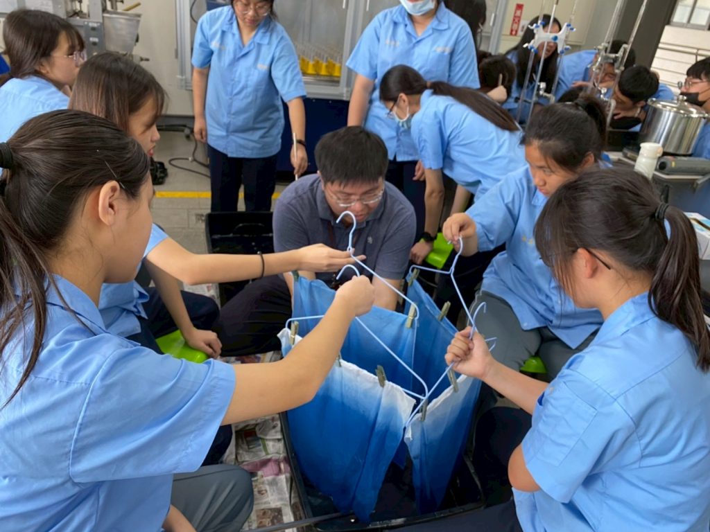 此外,面對全球永續趨勢與產業自動化需求,沙鹿高工染整科也持續調整課程方向,目前已導入數位印花技術,使學生能接觸低耗能、低廢水的新型染整方式;未來也將加入綠色化學概念,引導學生理解如何降低化學品使用、選擇較環保的染料與助劑、優化製程,以符合產業發展方向。