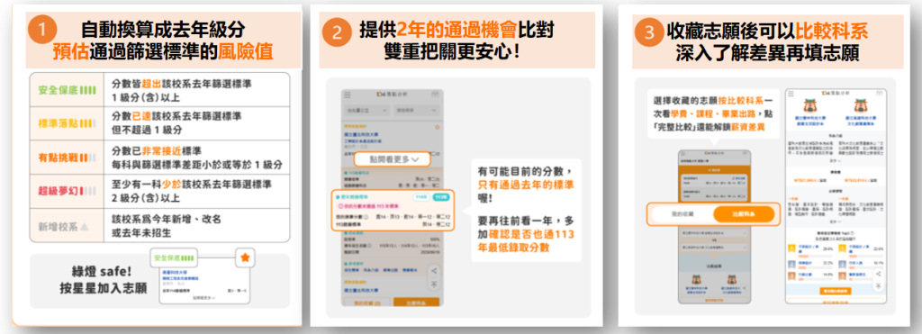 - 功能:強大的「比較科系」,可以直接看心儀志願的差異。