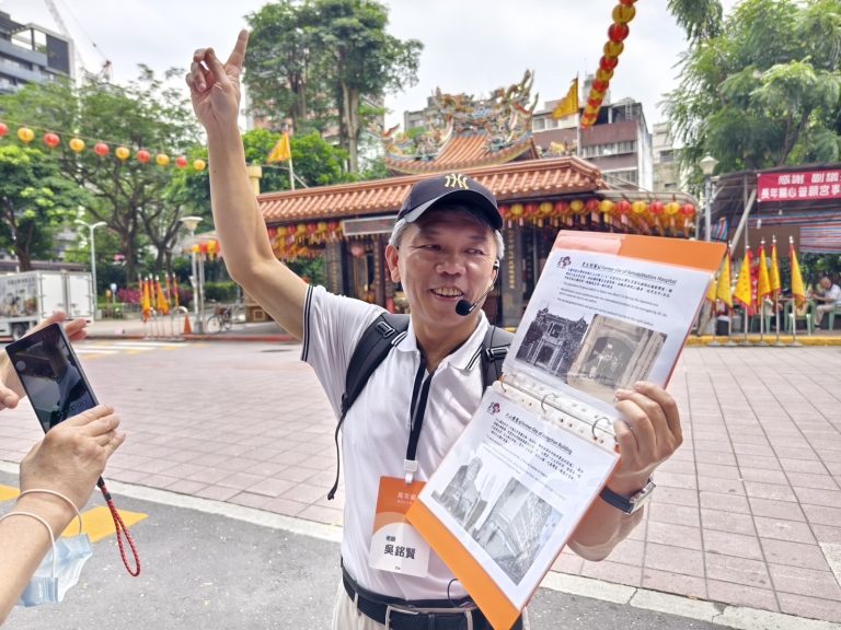 「我是 V 哥,不是米糕 ( 台語 ) !」吳銘賢老師總愛用諧音梗幽默開場。五年前,這位曾在電子業打滾三十年的主管,毅然卸下西裝,換上球鞋與帽子,成為 104 高年級平台最受歡迎的導覽講師之一。如今,他的身影背後總跟隨著一群學員,穿梭在北投巷弄與淡水河畔之間,用故事、歷史與笑聲,開啟一堂又一堂「中英台三聲道」的文化散步課。