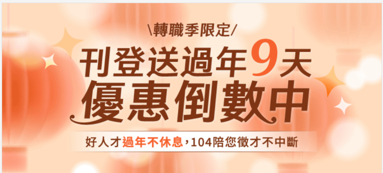 最新104刊登費用首購優惠方案,找人就來求職者最多的104人力銀行。2026年轉職季優惠方案,年前早鳥再送過年免費曝光!