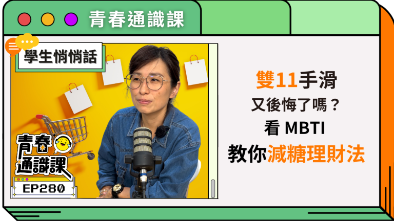 雙11到了,你的購物車也滿了嗎?本集《青春通識課》邀請理財專家「黑媽」帶大家拆解衝動消費背後的心理陷阱,從FOMO(錯失恐懼症)到社群推波助瀾,教你用MBTI性格找到最適合自己的理財策略。不論你是理性派還是感性派,都能用「減糖理財法」慢慢調整習慣、留住荷包。節目還分享學生族最實用的「六年百萬打工計畫」,幫你在享受生活的同時,也能穩穩累積財富。