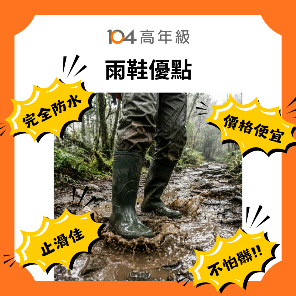 雨鞋最大的優點是完全防水、不怕泡水、清理方便、止滑性佳