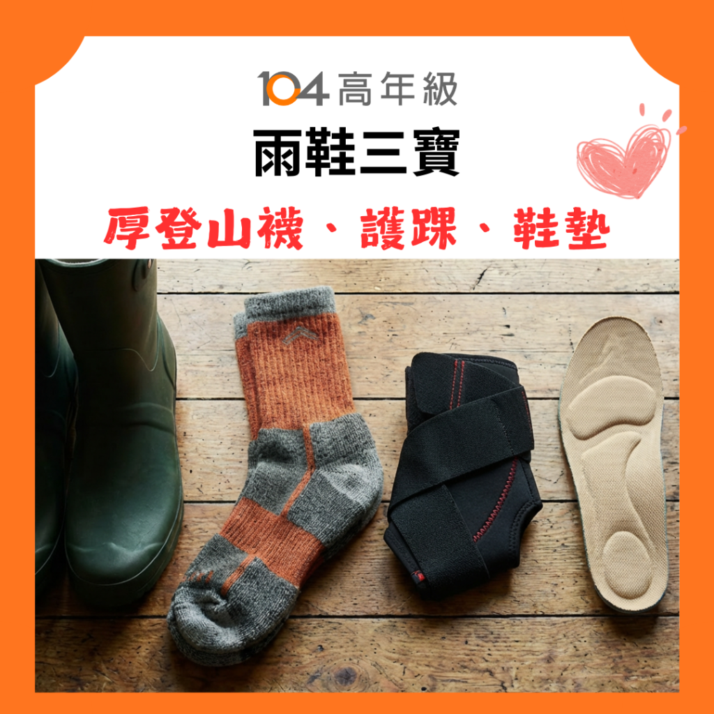 • 登山襪:負責吸濕排汗、減少摩擦,讓腳在長時間潮濕環境中依然保持舒適。