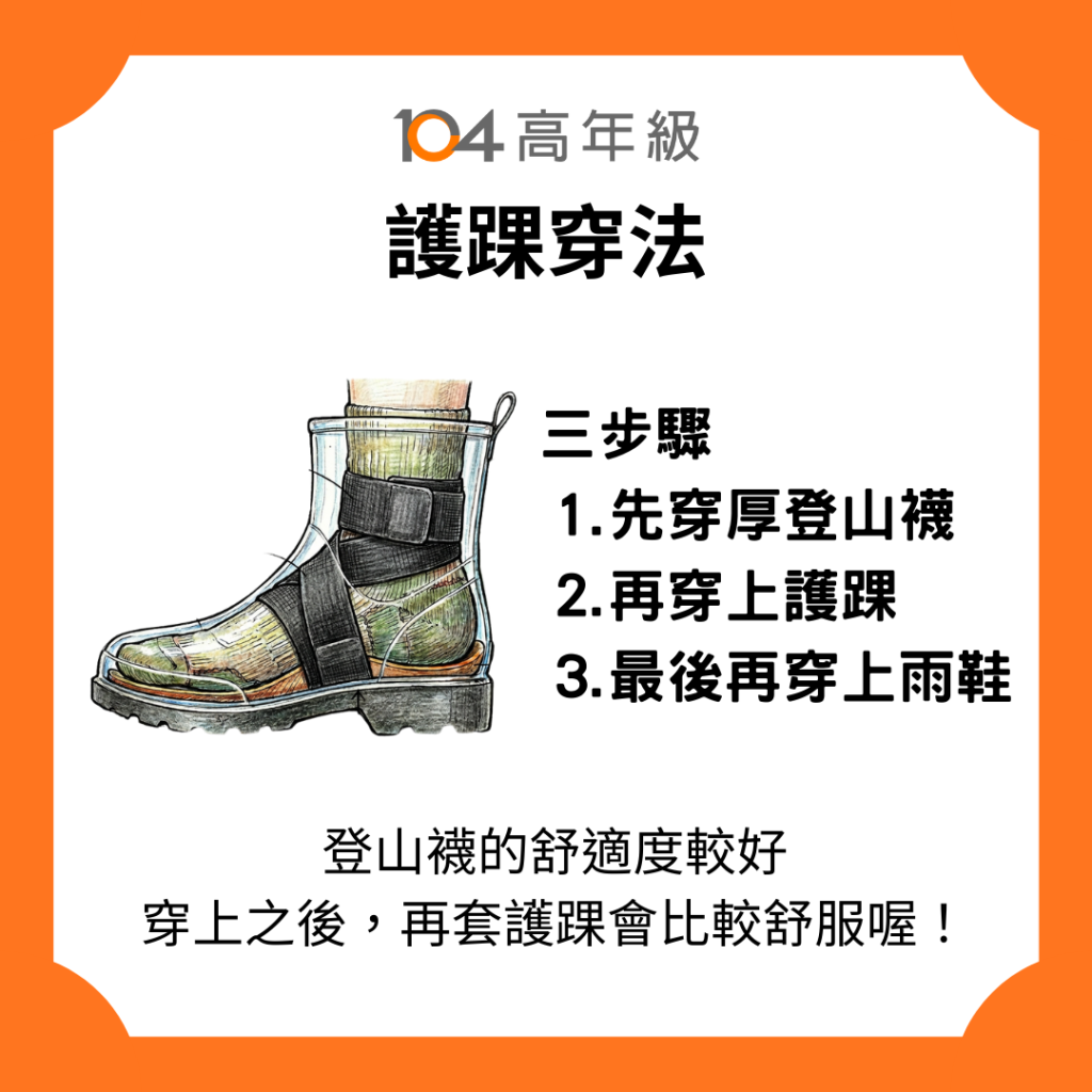 在山徑上,造成扭傷的關鍵往往是「側向受力」。當雨鞋本身側向支撐有限時,最實用、也最安全的補強方式就是從「人體端」補強——也就是護踝。
