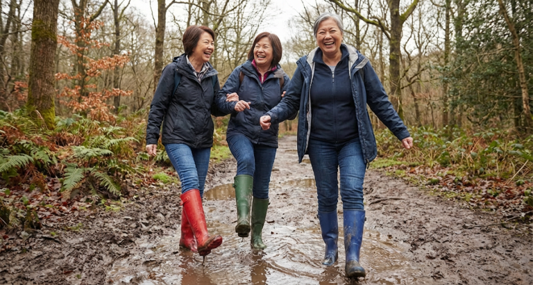在台灣健行、登山,下雨不是例外,而是日常。只要進入雨季,郊山步道、林間小徑常常泥濘積水,這時雨鞋就成了不少山友的選擇,而且雨鞋很~便~宜~但同時,也常聽到疑問:「雨鞋好像不太穩,會不會容易扭傷?」「穿久會不會很累?」 ,其實,雨鞋只要用在對的情境、搭配正確的輔助方式,不但實用,還能讓雨天行程更輕鬆。這篇文章將從雨鞋挑選開始,談到側向穩定、護踝搭配,以及如何透過更換鞋墊提升舒適與防震。