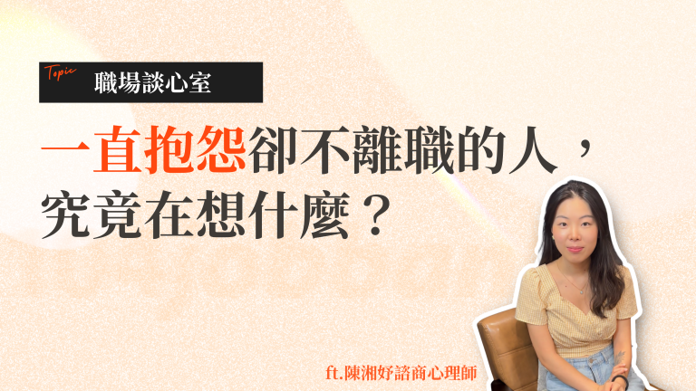 同事明明常常抱怨工作環境,但面對不喜歡的處境,卻始終沒有離職,這究竟是為什麼呢?104人力銀行專訪心理師陳湘妤,一起探討那些總被負能量包圍的同事,為什麼寧可待在不喜歡的環境中,也不願離開?而身為旁觀者的我們,又該如何面對他們不斷的抱怨呢?