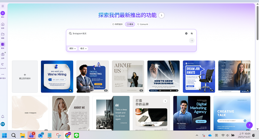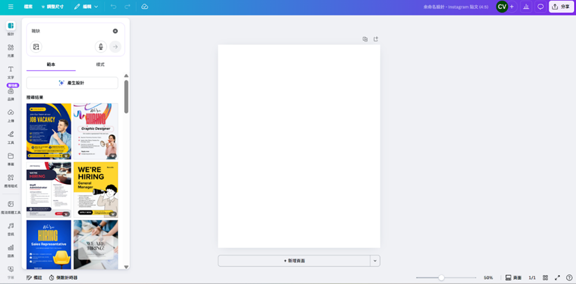 選 IG 貼文模板(若想製作職缺貼文,可直接蒐尋職缺)