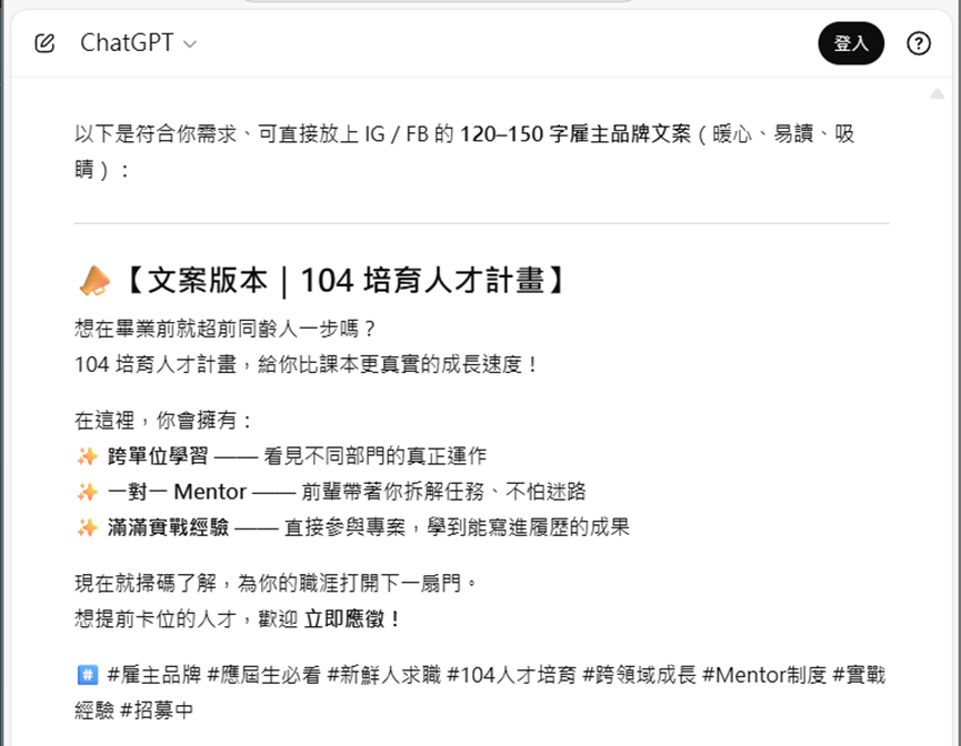 ✔ 先用 ChatGPT 生成貼文文案
