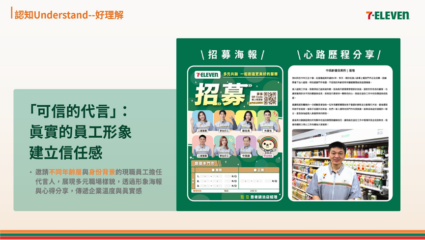 7-ELEVEN 長期使用員工代言,讓求職者能感受到: