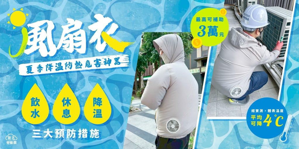 近日氣溫屢創新高,新北市勞檢處日前宣布補助企業「風扇衣」,成為全國第一個補助此項目的縣市,不少勞工直呼「有感」。新北市勞工局長陳瑞嘉今天表示,明年補助預算將提高一倍至300萬元,並簡化申請程序,守護勞工健康避免熱傷害引發的職災。