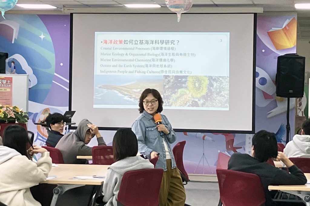 圖:中央大學副教務長王俐容向學生說明「校學士」制度與領域專長模組特色課程,互動良好。照片由中央大學教學發展中心提供