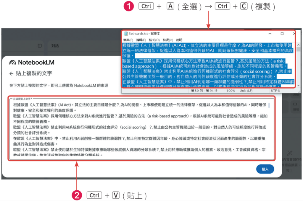 另外,由於目前NotebookLM的匯入來源尚不支援csv檔,所以你可以使用「貼上複製文字」的方式來進行匯入。