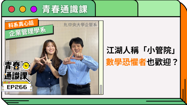 企管系不只是學商業管理,它是一個涵蓋行銷、財務、人力資源、創業、數位工具與企業策略的多元學習天地。在本集《青春通識課》,我們邀請了中央企管系的老師和學生,帶大家了解企管系到底在學什麼,如何透過課堂與實作建立跨領域能力。