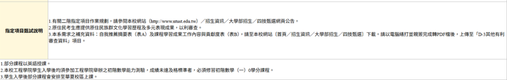 簡章的最下方有關於第二階段的甄試說明事項,並說明該系的備註,也是考生在進入第二階段的部分需要特別注意的。